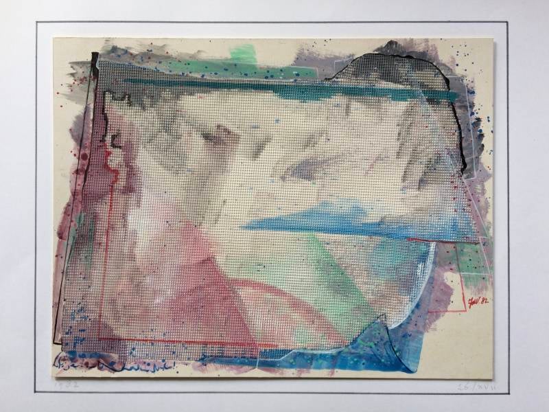 MURAGE X, aryl/tule op ivoorkarton,40,5x35,5cm